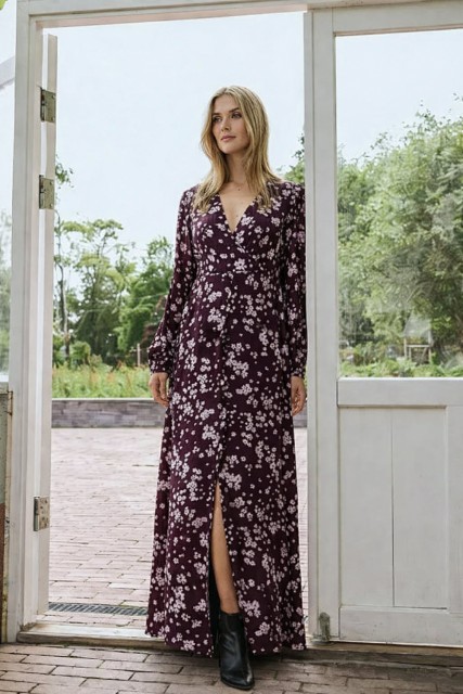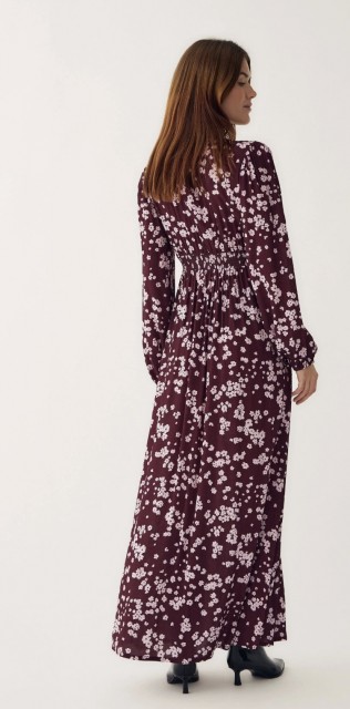 Lilith Maxi Dress er en lang kjole med lange ermer, markert midje og en flatterende V-utringning. Blomstret all-over-print og dekorative knapper foran gir et sjarmerende uttrykk.