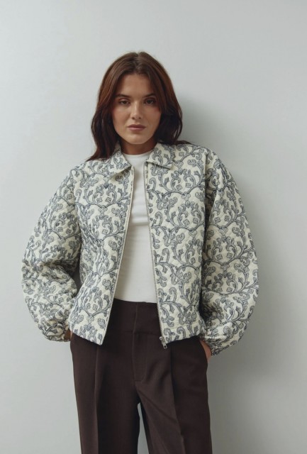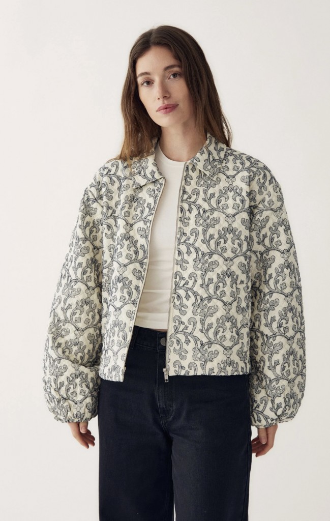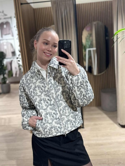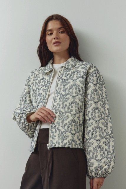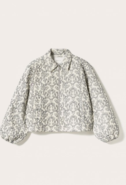 N-Mariam Jacket er en kort, quiltet bomullsjakke med delikat broderi, klassisk krage og glidelåslukking foran.
