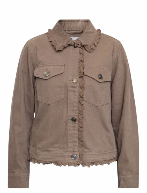 FLIK-JA er en denimjakke med knapper, brystlommer og fine broderidetaljer på kraven. Modellen har en str. S på