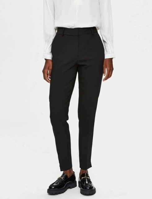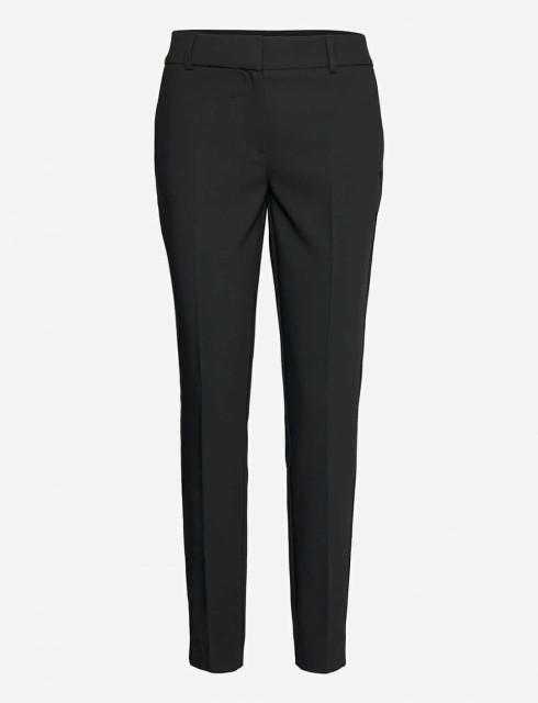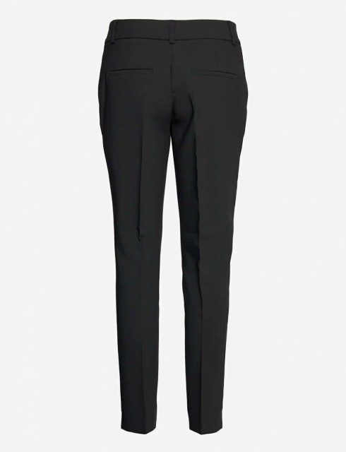 Klassisk sort dressbukse med høyt liv og smale ben. Ankel lengde .Lett og deilig stoff som faller fint. Buksen lukkes med hempe, knapp og glidelås og har stikklommer i sidene og jukse baklommer. Superfin alene med en lekker bluse eller topp!